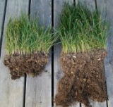 少しずつ供給され根が数倍発達する 初期の小麦生育が良好になる要因になっている。 小麦が吸収されると根、茎、葉が固く太く厚く大きくなる生育を見せる。