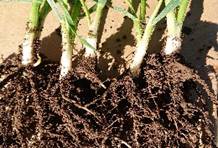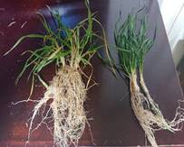 ケイ酸が補給されると植物の栄養生産がよくなるために、根に循環され根の伸長が良くなり特に分岐根が増え収穫物の収量に大きく影響している。(根量が2~4倍にもなる)