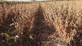 ##今畑作土壌では、部分粒亡が多くなり平均単収を下げている。(ドローンにて撮影)!##