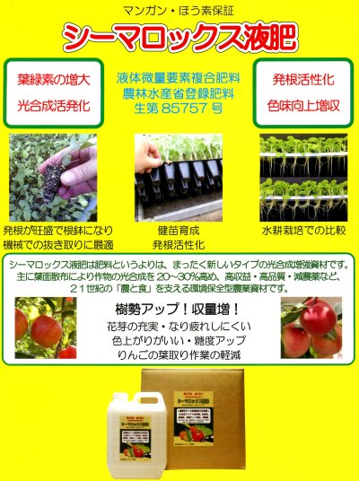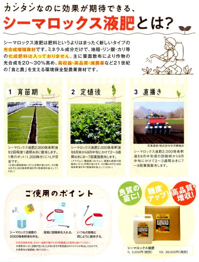| シーマロックス液肥 | 200ml | 100ml | 50ml | 3.3ml |